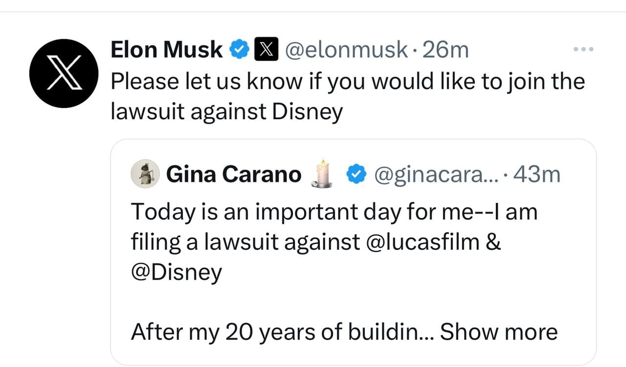 Elon Musk, known for his disruptive approach and backing of unconventional causes, has stepped forward to finance Carano's legal battle. While Musk's involvement in the entertainment industry lawsuit might seem out of place, it isn't entirely unexpected. Musk and Carano share a connection via Musk's partner, musician Grimes, who guest-starred alongside Carano in an episode of 'The Mandalorian'.